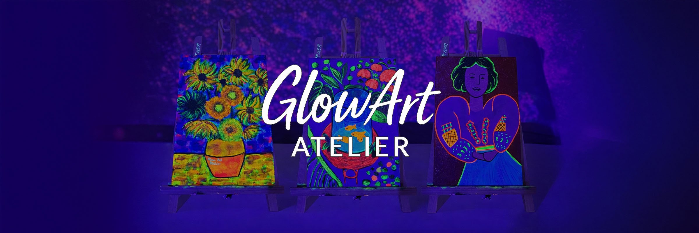 🎨 Pictează, relaxează-te și lasă-ți imaginația să strălucească în întuneric! Descoperă un atelier unic unde arta prinde viață sub lumina UV. Cu pensula în mână, culorile fluorescente pe pânză și un pahar alături, vei intra în universul vizual al lui Van Gogh & Henri Matisse și vei crea propria ta versiune, într-o atmosferă vibrantă și plină de energie.