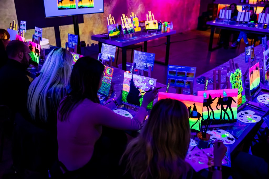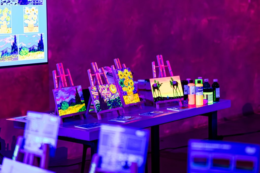 🎨 Pictează, relaxează-te și lasă-ți imaginația să strălucească în întuneric! Descoperă un atelier unic unde arta prinde viață sub lumina UV. Cu pensula în mână, culorile fluorescente pe pânză și un pahar alături, vei intra în universul vizual al lui Van Gogh & Salvador Dali și vei crea propria ta versiune, într-o atmosferă vibrantă și plină de energie.